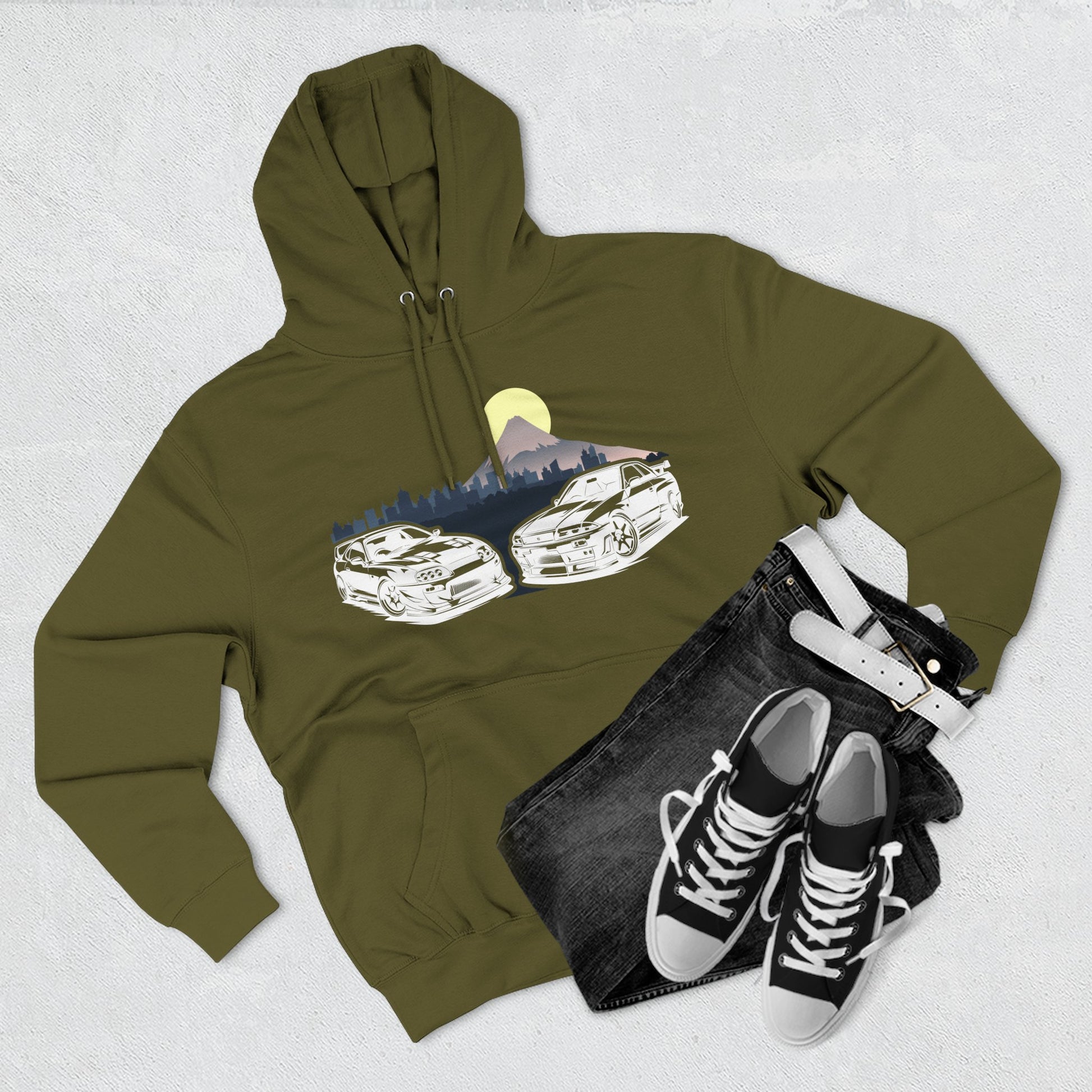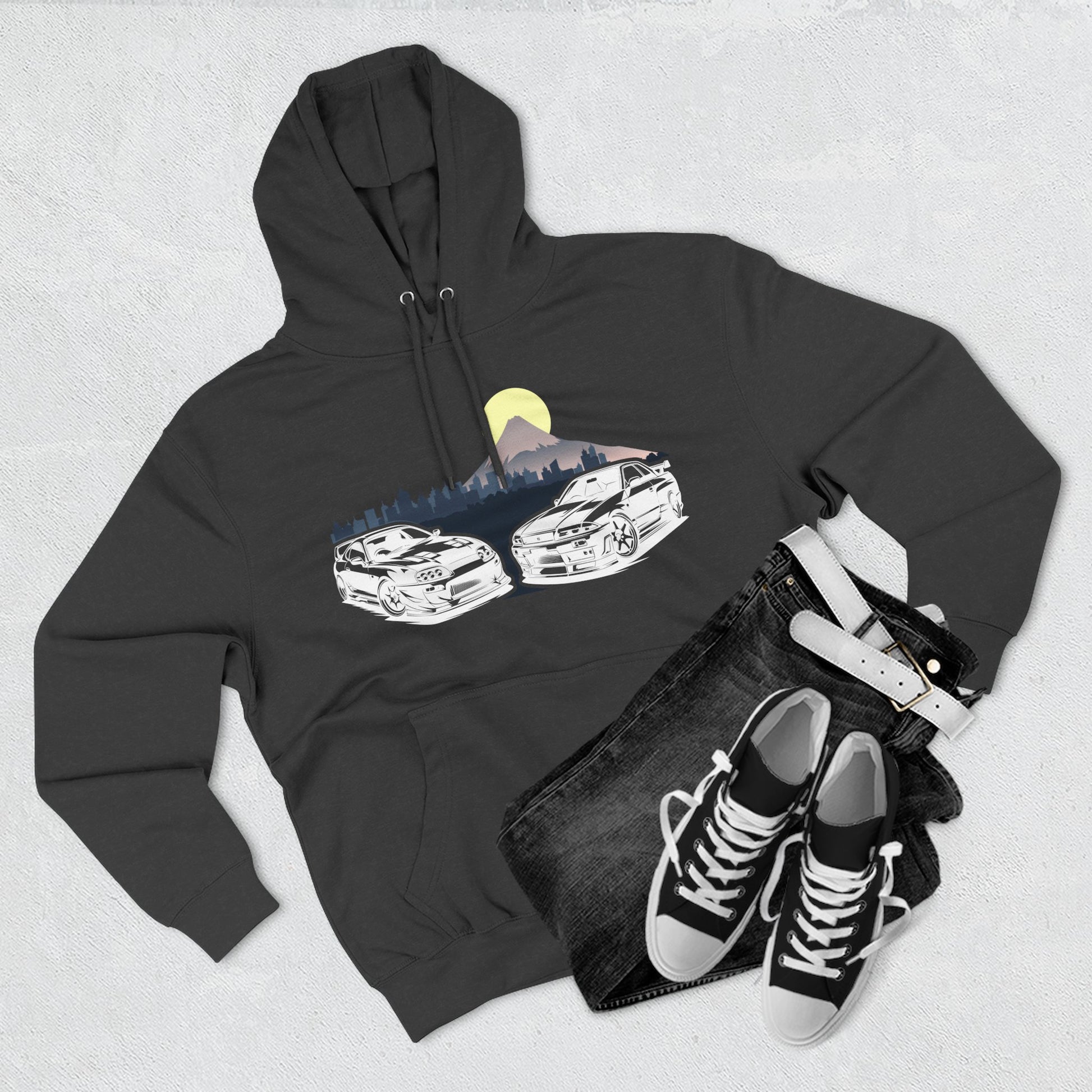 Supra and Skyline Tokyo Three-Panel Fleece Hoodie, Gift for Him, Men’s Hoodie, Automotive Apparel, Cozy Hoodie for Car Enthusiasts
